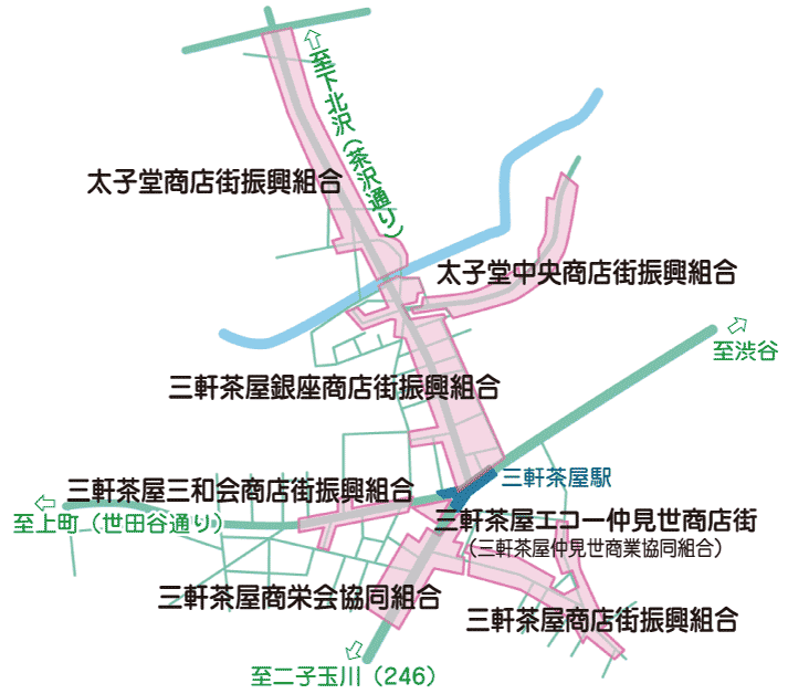 住みよい街、魅力のある街、住みたい街 News newsお知らせ2026年3月2日7商店街の理事長、東京 ...続きを読む 三軒茶屋・太子堂商店街連合とは? 三軒茶屋・太子堂商店街連合は、「住みよい街、住みたい街、魅力ある街」を合言葉に地域の発展と活性化を目指しています。現在、エリアの7商店街が参加しこれら活動をおこなっています。 加盟商店街のご紹介はこちら 三軒茶屋・太子堂 7商店街領域マップ